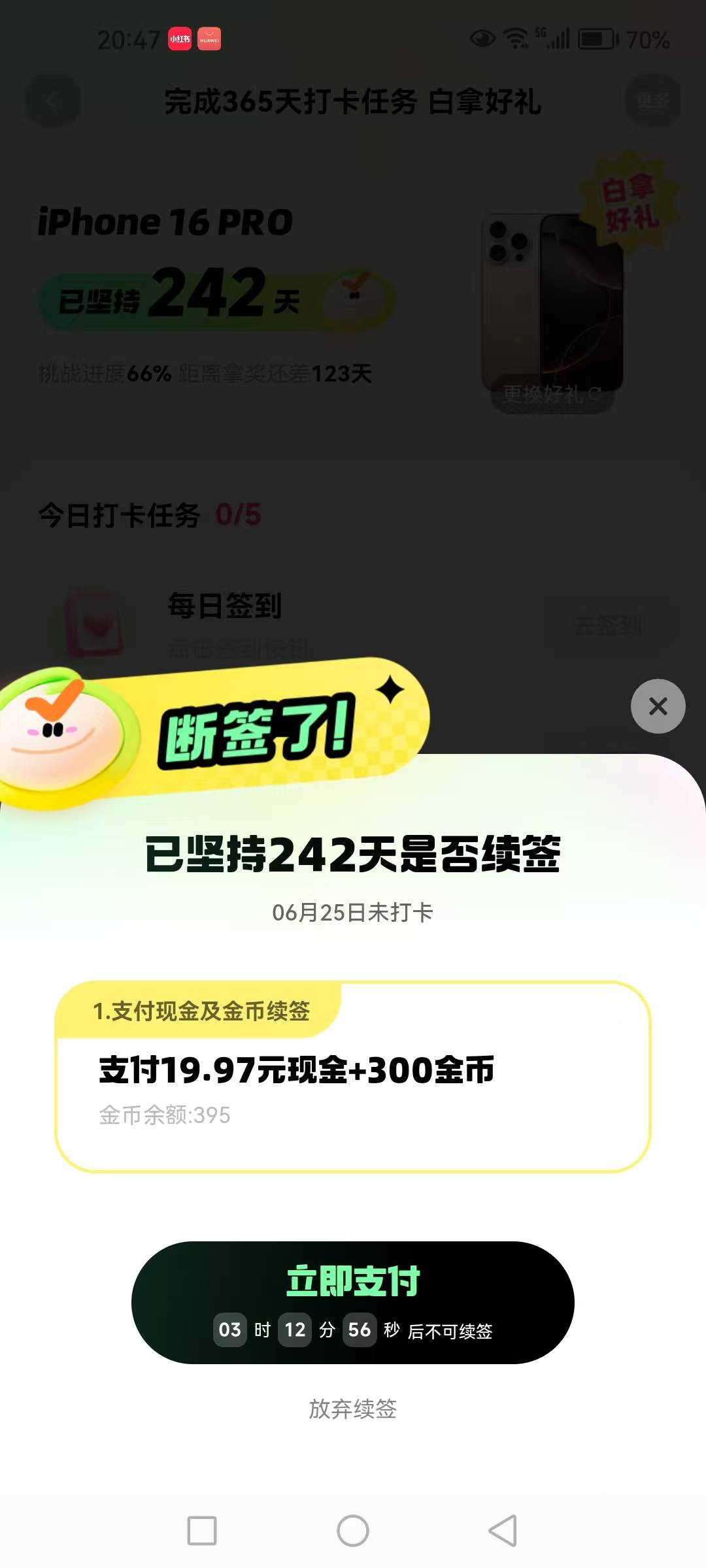 还有网友说,自己断签了,又拉不到新人,又舍不得放弃,“第一次断签就这么贵,难受。”附上截图显示,要完成续签,支付86.88元+11200金币,或邀请5位新用户。