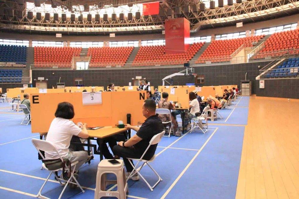 金贝娱乐,金贝娱乐官网,金贝娱乐下载,金贝娱乐注册,真人视讯,棋牌游戏平台,娱乐彩金一张方桌,就是一片没有硝烟的战场;两两对坐,开启一场头脑的博弈。10月10日,重庆市第十四届全民健身运动会桥牌比赛在北碚缙云体育中心体育馆开幕,232名选手以牌会友,以智交锋。