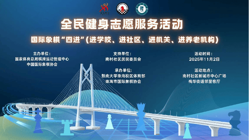 金贝娱乐,金贝娱乐官网,金贝娱乐下载,金贝娱乐注册,真人视讯,棋牌游戏平台,娱乐彩金11月2日下午,由国家体育总局棋牌运动管理中心、中国国际象棋协会主办,珠海市翠香街道兴业社区居民委员会支持,暨南大学珠海校区体育部、珠海市国际象棋协会联合承办的国际象棋“四进”(进学校、进社区、进机关、进养老机构)全民健身志愿服务活动,在珠海兴业社区党群服务中心成功举办。本活动旨在丰富社区文化生活,推广国际象棋运动,助力全民健身战略落地。
