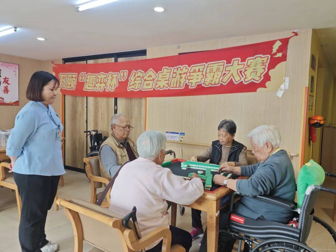 榕悦·大鹏滨海颐养中心则打造了一场集益智与趣味于一体的欢乐盛宴,麻将、桌游、桌上足球三大环节串联起满室温情。工作人员精心布置场地、筹备礼品,长辈们神采奕奕赴约。